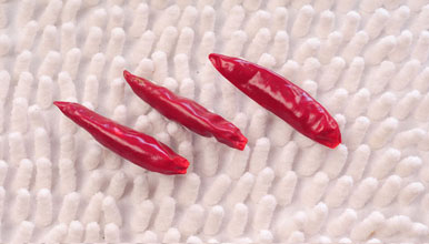 顏色棗紅 干辣椒顏色為棗紅,有光澤的為上等品,忌非常艷麗的顏色。 |